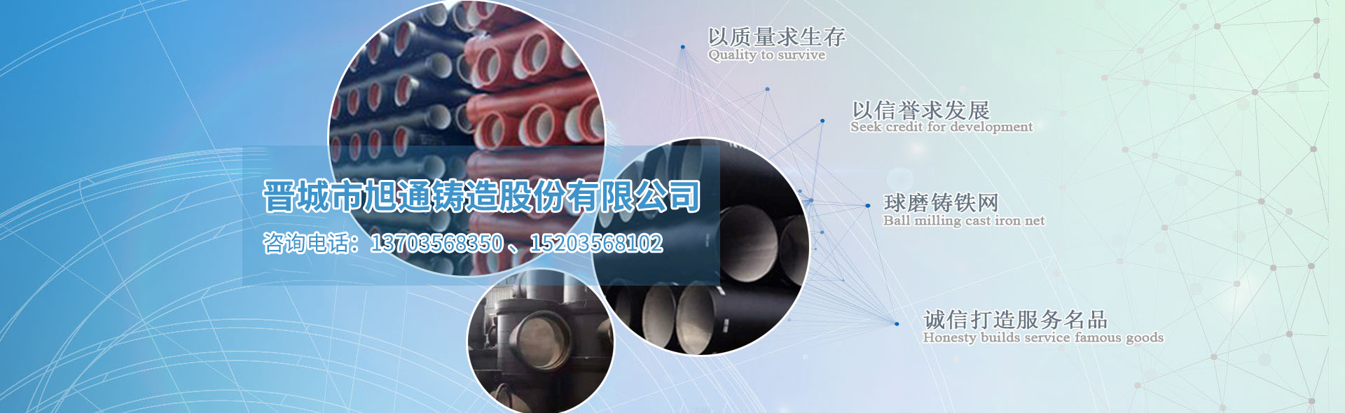 晉城市旭通鑄造股份有限公司是一家致力于球墨鑄造產(chǎn)品及柔性鑄鐵產(chǎn)品及相關(guān)配件的加工、銷售、新產(chǎn)品開發(fā)和服務(wù)的網(wǎng)絡(luò)平臺,以“多、快、好、省”為服務(wù)宗旨,多種選擇、快速定位、優(yōu)質(zhì)產(chǎn)品、省錢省力,為客戶提供精準(zhǔn)服務(wù)......